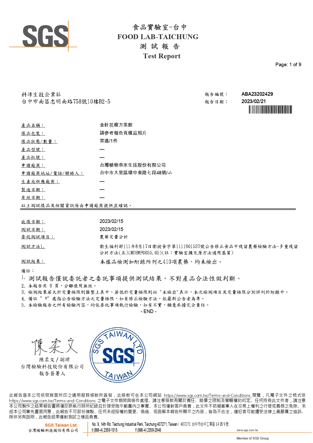 韭韭皇檢驗報告